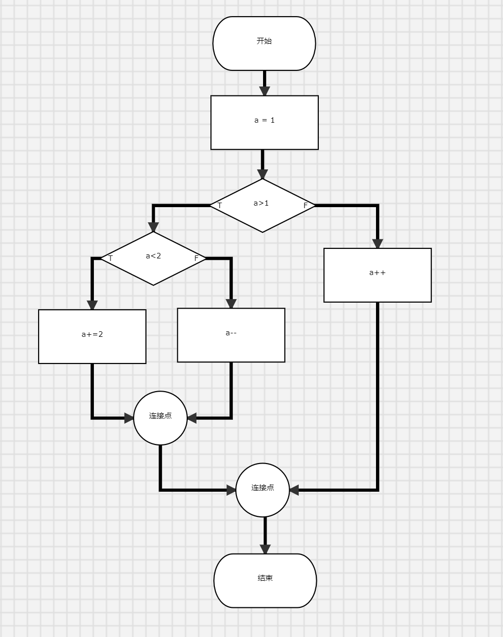 {"nodes":[{"id":"8b9a4fe8-665a-4f1c-85cb-41cc5594e3a9","title":"开始","x":300,"y":150,"name":"startComponent","state":0},{"id":"22313090-7cb0-48d7-ab3e-bcd05e7e0a98","title":"a = 1\n","x":284.84429931640625,"y":272.30169677734375,"name":"activityComponent","state":0},{"id":"590a3f56-417a-44e0-9a44-5c61bea58bff","title":"a>1\n","x":281,"y":426.6131286621094,"name":"branchComponent","state":0},{"id":"07c10829-2581-47a9-b165-73474b923565","title":"连接点","x":281.1772155761719,"y":956.3504028320312,"name":"connecterComponent","state":0},{"id":"38c0b2ee-13a6-4733-b8dc-b02c24780a44","title":"a++","x":495.5377197265625,"y":556.3868408203125,"name":"activityComponent","state":0},{"id":"c45091a8-d6e3-452e-8928-b9a8427bd388","title":"结束","x":272.37725830078125,"y":1120.5072021484375,"name":"endComponent","state":0},{"id":"b765afda-a046-4fca-bd5f-d2a3ec8dddd6","title":"a<2","x":77.49570780346897,"y":525.1352540974738,"name":"branchComponent","state":0},{"id":"38149e9d-5dc0-445b-9047-a859e6f4173c","title":"a+=2","x":-36.48339750664667,"y":670.682418918798,"name":"activityComponent","state":0},{"id":"15071e80-d33e-4a8b-ae83-2199b072f03b","title":"a--","x":222.49170666613236,"y":668.0033233445831,"name":"activityComponent","state":0},{"id":"e394fb34-14b4-4219-ad69-c0d3f4f2c922","title":"连接点","x":90.5376832207292,"y":822.3424062666506,"name":"connecterComponent","state":0}],"edges":[{"source":{"id":"8b9a4fe8-665a-4f1c-85cb-41cc5594e3a9","title":"开始","x":300,"y":150,"name":"startComponent","state":0},"target":{"id":"22313090-7cb0-48d7-ab3e-bcd05e7e0a98","title":"a = 1\n","x":284.84429931640625,"y":272.30169677734375,"name":"activityComponent","state":0}},{"source":{"id":"22313090-7cb0-48d7-ab3e-bcd05e7e0a98","title":"a = 1\n","x":284.84429931640625,"y":272.30169677734375,"name":"activityComponent","state":0},"target":{"id":"590a3f56-417a-44e0-9a44-5c61bea58bff","title":"a>1\n","x":281,"y":426.6131286621094,"name":"branchComponent","state":0}},{"source":{"id":"590a3f56-417a-44e0-9a44-5c61bea58bff","title":"a>1\n","x":281,"y":426.6131286621094,"name":"branchComponent","state":0},"target":{"id":"38c0b2ee-13a6-4733-b8dc-b02c24780a44","title":"a++","x":495.5377197265625,"y":556.3868408203125,"name":"activityComponent","state":0}},{"target":{"id":"07c10829-2581-47a9-b165-73474b923565","title":"连接点","x":281.1772155761719,"y":956.3504028320312,"name":"connecterComponent","state":0},"source":{"id":"38c0b2ee-13a6-4733-b8dc-b02c24780a44","title":"a++","x":495.5377197265625,"y":556.3868408203125,"name":"activityComponent","state":0}},{"source":{"id":"07c10829-2581-47a9-b165-73474b923565","title":"连接点","x":281.1772155761719,"y":956.3504028320312,"name":"connecterComponent","state":0},"target":{"id":"c45091a8-d6e3-452e-8928-b9a8427bd388","title":"结束","x":272.37725830078125,"y":1120.5072021484375,"name":"endComponent","state":0}},{"source":{"id":"590a3f56-417a-44e0-9a44-5c61bea58bff","title":"a>1\n","x":281,"y":426.6131286621094,"name":"branchComponent","state":0},"target":{"id":"b765afda-a046-4fca-bd5f-d2a3ec8dddd6","title":"a<2","x":77.49570780346897,"y":525.1352540974738,"name":"branchComponent","state":0}},{"source":{"id":"b765afda-a046-4fca-bd5f-d2a3ec8dddd6","title":"a<2","x":77.49570780346897,"y":525.1352540974738,"name":"branchComponent","state":0},"target":{"id":"38149e9d-5dc0-445b-9047-a859e6f4173c","title":"a+=2","x":-36.48339750664667,"y":670.682418918798,"name":"activityComponent","state":0}},{"source":{"id":"b765afda-a046-4fca-bd5f-d2a3ec8dddd6","title":"a<2","x":77.49570780346897,"y":525.1352540974738,"name":"branchComponent","state":0},"target":{"id":"15071e80-d33e-4a8b-ae83-2199b072f03b","title":"a--","x":222.49170666613236,"y":668.0033233445831,"name":"activityComponent","state":0}},{"source":{"id":"38149e9d-5dc0-445b-9047-a859e6f4173c","title":"a+=2","x":-36.48339750664667,"y":670.682418918798,"name":"activityComponent","state":0},"target":{"id":"e394fb34-14b4-4219-ad69-c0d3f4f2c922","title":"连接点","x":90.5376832207292,"y":822.3424062666506,"name":"connecterComponent","state":0}},{"source":{"id":"15071e80-d33e-4a8b-ae83-2199b072f03b","title":"a--","x":222.49170666613236,"y":668.0033233445831,"name":"activityComponent","state":0},"target":{"id":"e394fb34-14b4-4219-ad69-c0d3f4f2c922","title":"连接点","x":90.5376832207292,"y":822.3424062666506,"name":"connecterComponent","state":0}},{"target":{"id":"07c10829-2581-47a9-b165-73474b923565","title":"连接点","x":281.1772155761719,"y":956.3504028320312,"name":"connecterComponent","state":0},"source":{"id":"e394fb34-14b4-4219-ad69-c0d3f4f2c922","title":"连接点","x":90.5376832207292,"y":822.3424062666506,"name":"connecterComponent","state":0}}]}